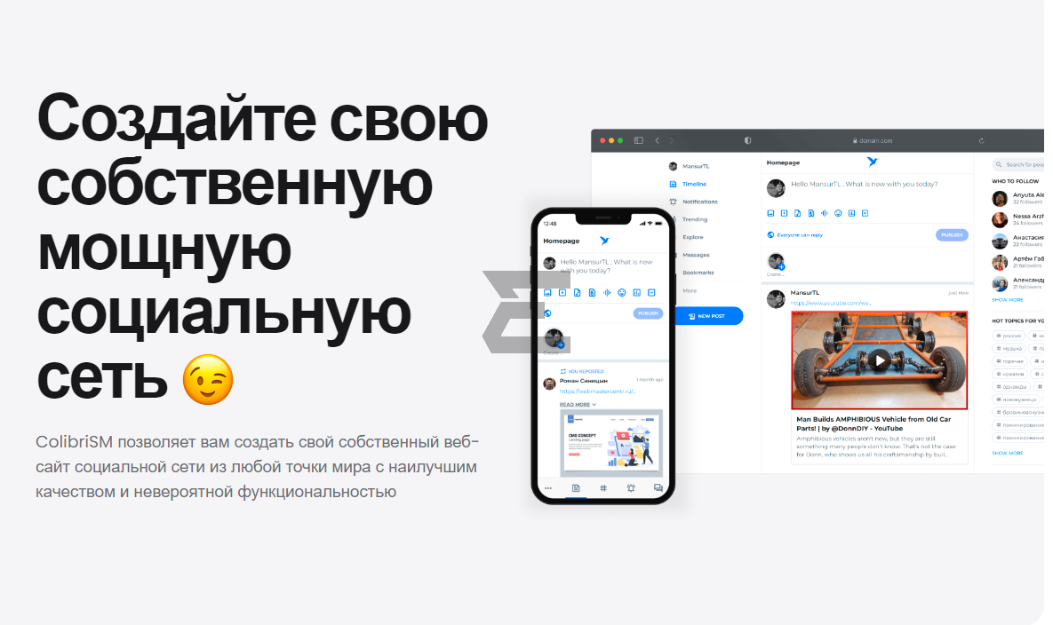 Хотели ли вы когда нибудь аналог Twitter? Скрипт ColibriSM один из лучших вариантов для создания собственной социальной платформы по распростарению мнений, ответов и видеоконтента. Скрипт работает на php 7 и выше.