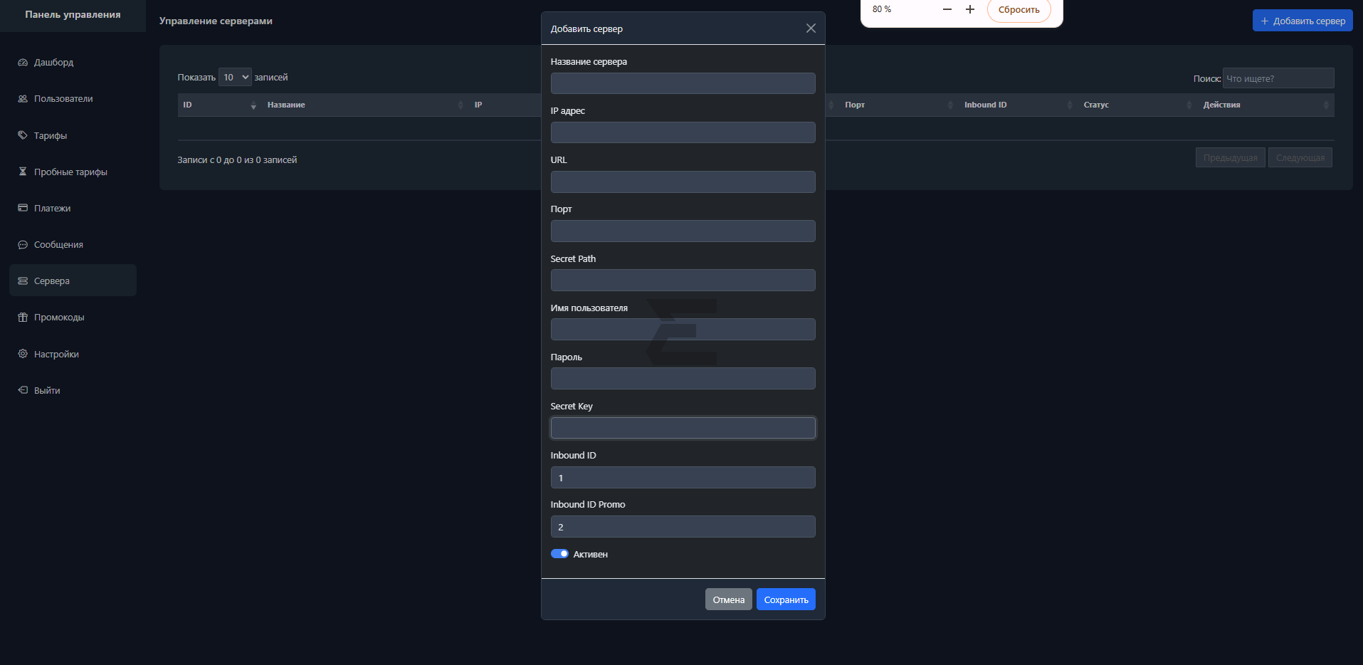 Добавление новых серверов через Админ-панель или Веб-модуль