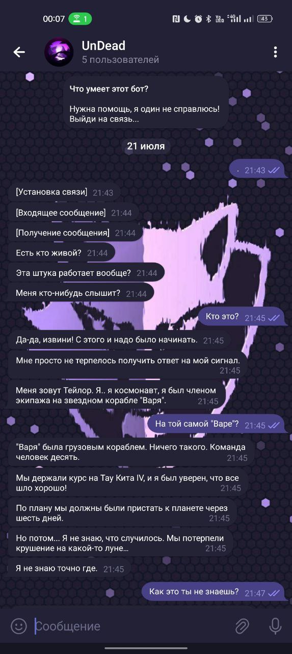 Телеграм Бот - игра, основана на мобильной игре Life Line